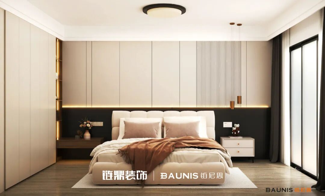 ☁️快瞧这间治愈系卧室!整体被奶杏色温柔包裹,一整个松弛感拉满~软乎乎的大床像朵云朵,搭配同色系床品、棕色毛毯,躺下就想 “原地冬眠”🌈~