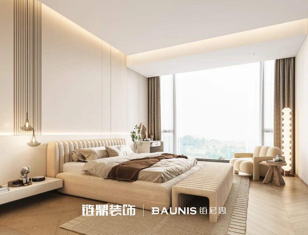 ☁️快瞧这间治愈系卧室!整体被奶杏色温柔包裹,一整个松弛感拉满~软乎乎的大床像朵云朵,搭配同色系床品、棕色毛毯,躺下就想 “原地冬眠”🌈~